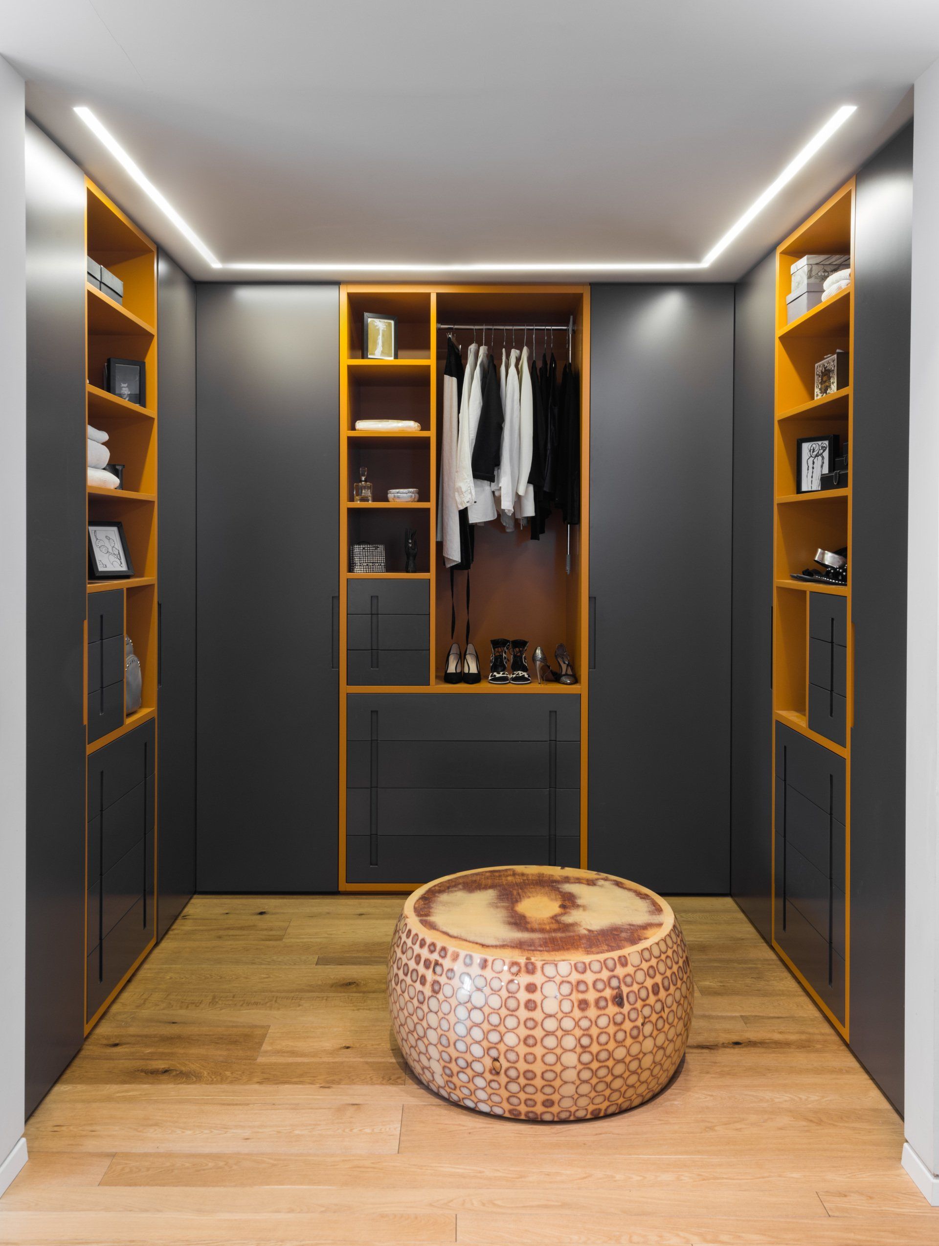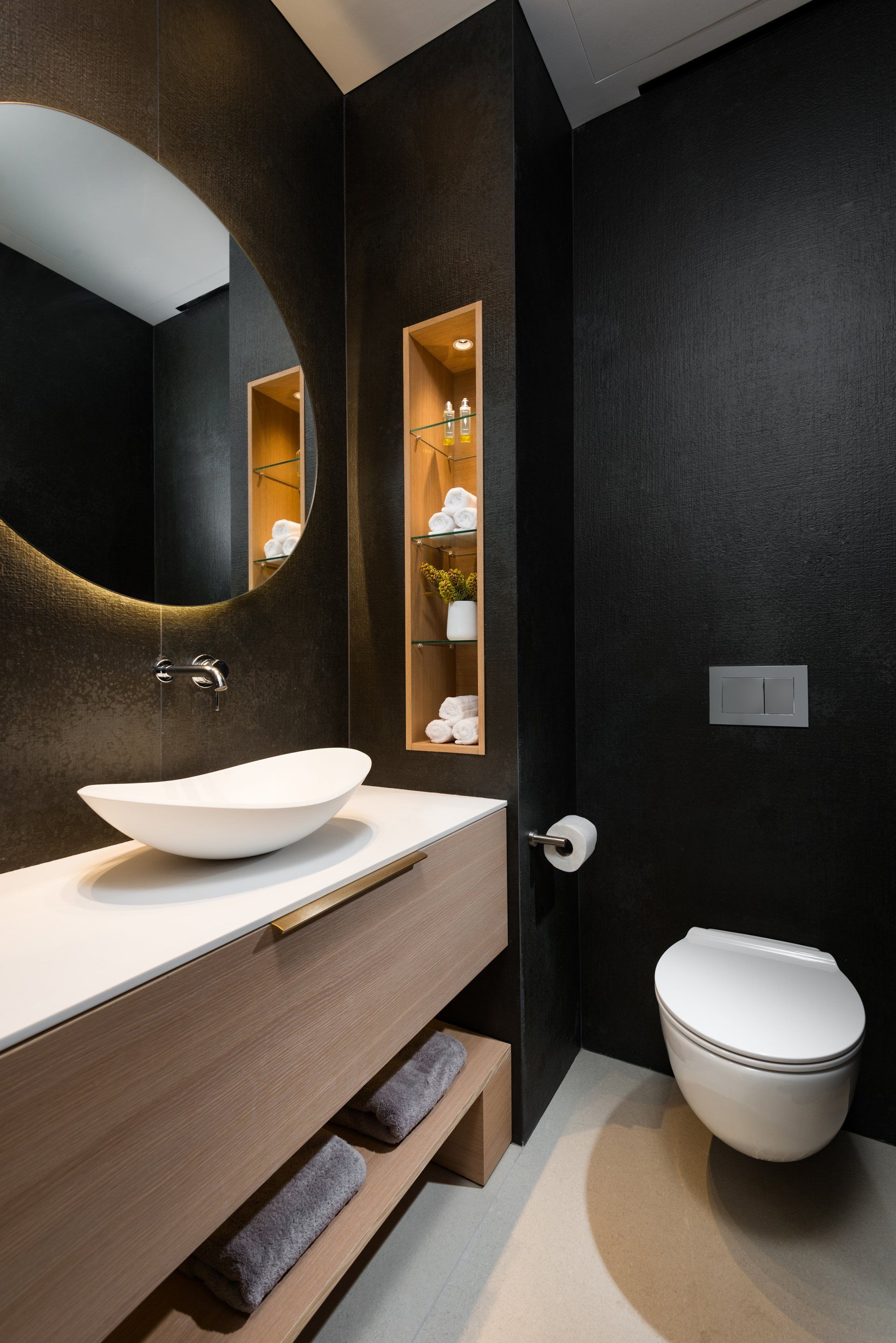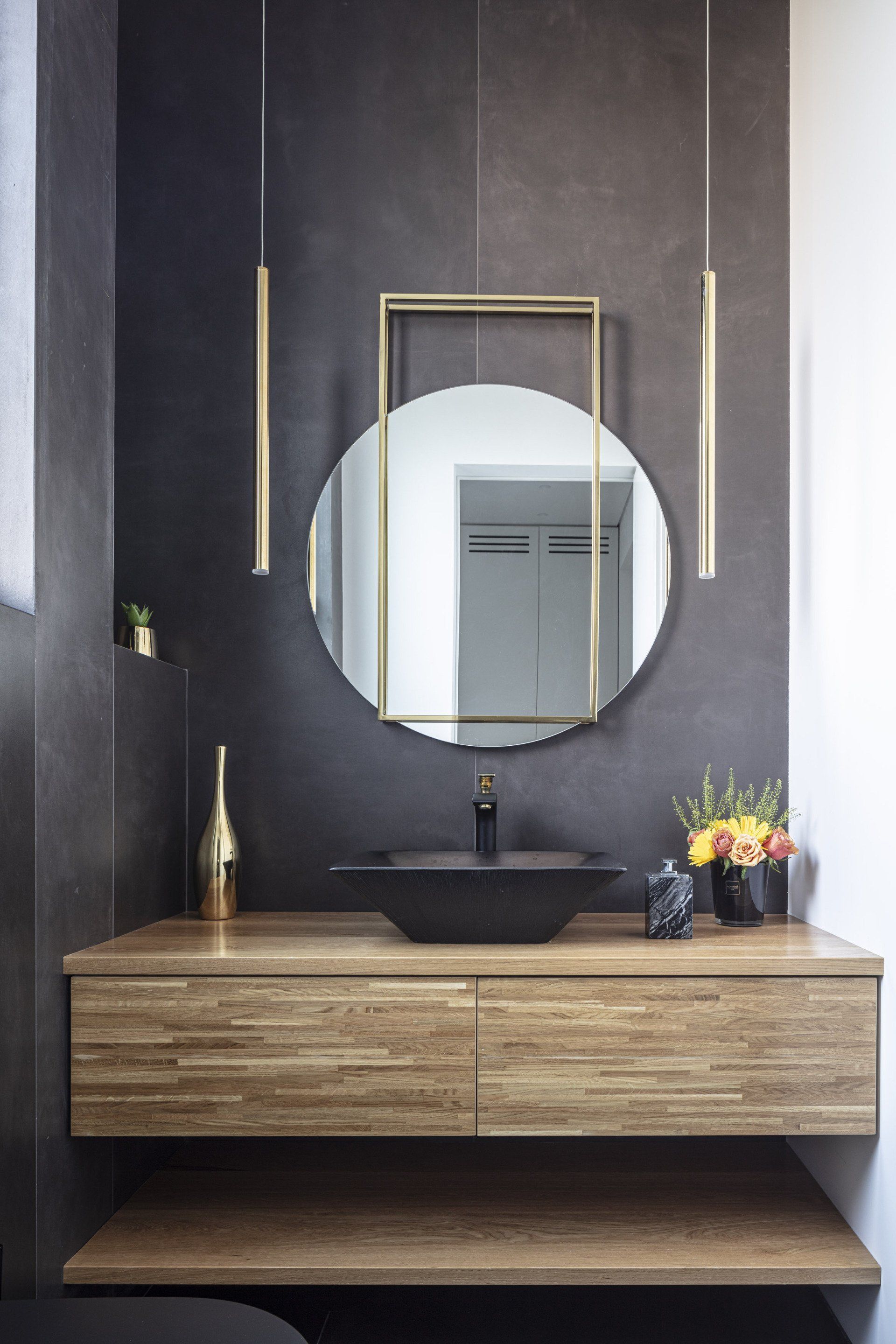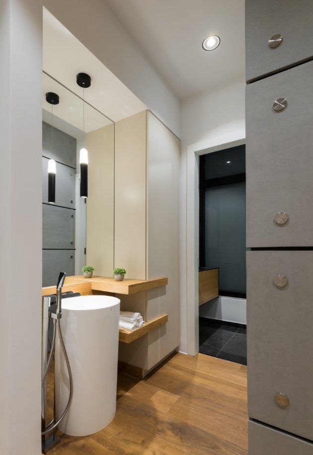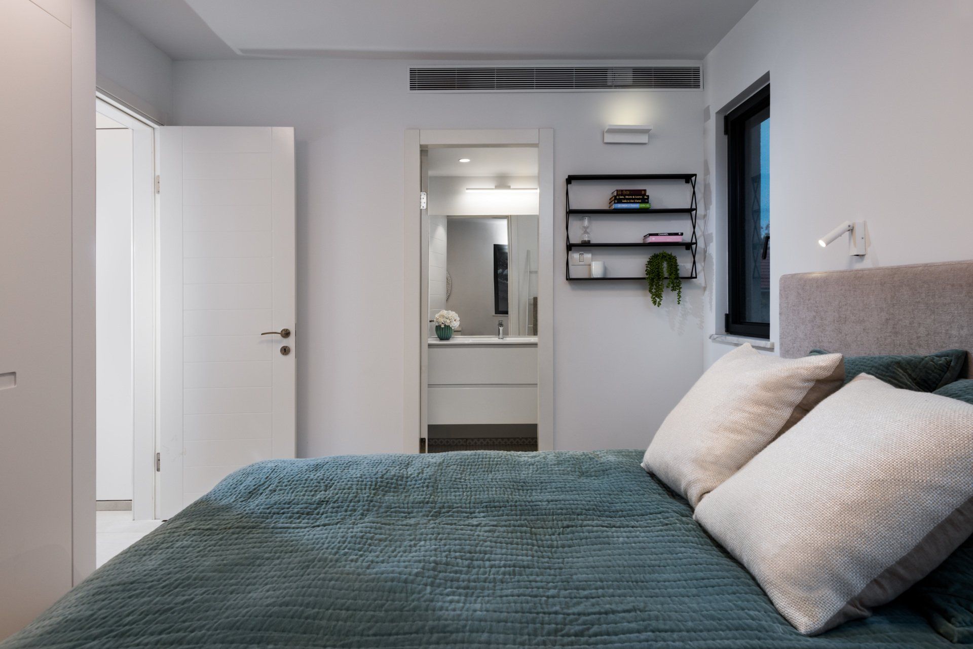 שלושה גוונים מובילים בעיצוב דירת הנופש הזו הנמצאת בלב תל אביב ומשקיפה על כל העיר. שחור, לבן וזהב בהרמוניה המקרינה אלגנטיות מודרנית. בולט במיוחד חיפוי קיר הממ"ד במחומשי עץ המסתירים את חלון ודלת הממ"ד הפונים אל תוך הדירה. שימוש בגופי תאורה המשלימים את העיצוב ומשמשים כמו תכשיט בחלל.