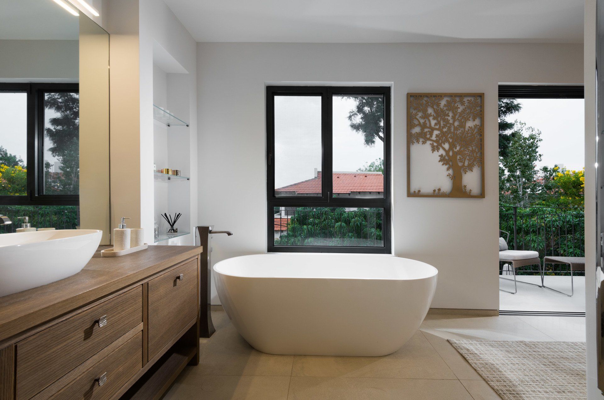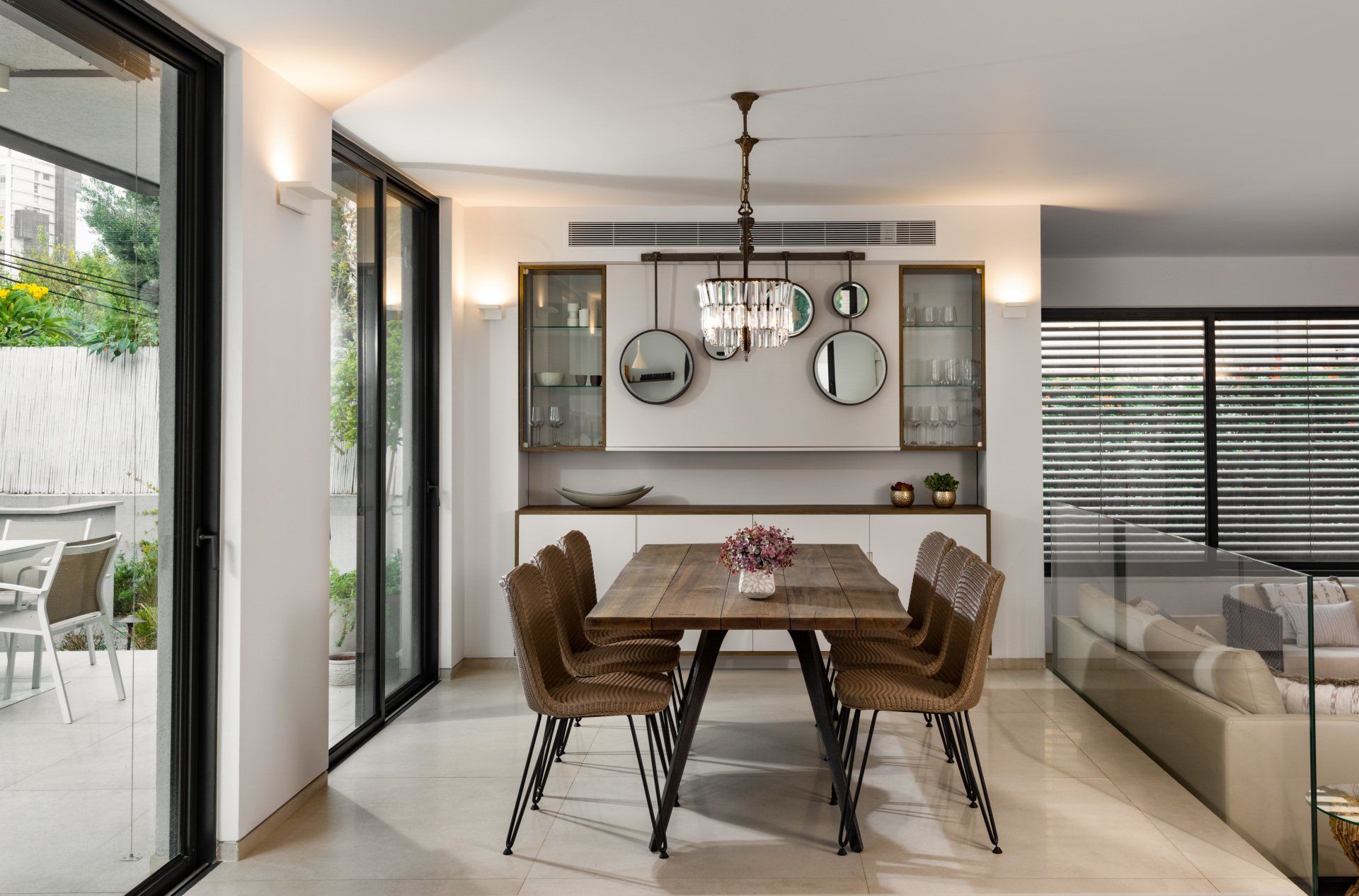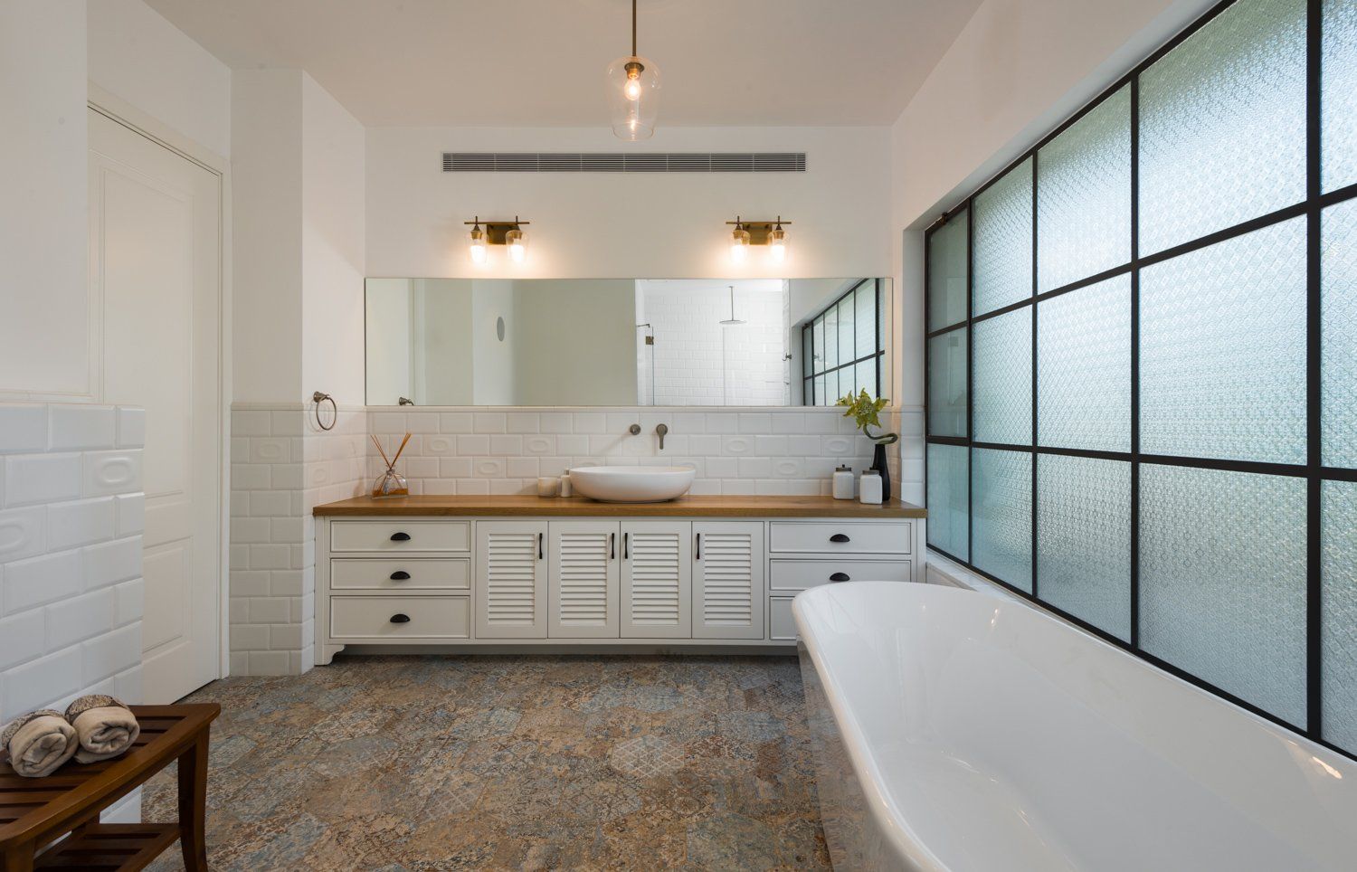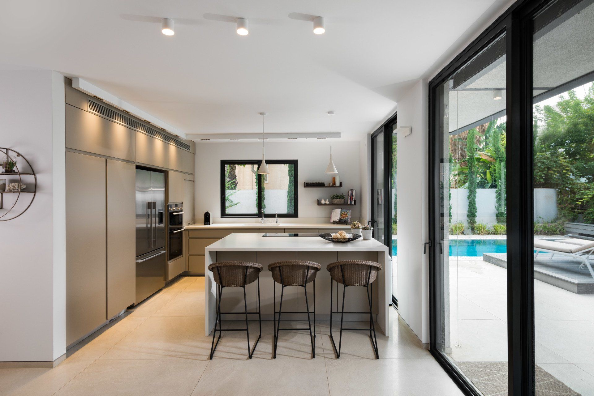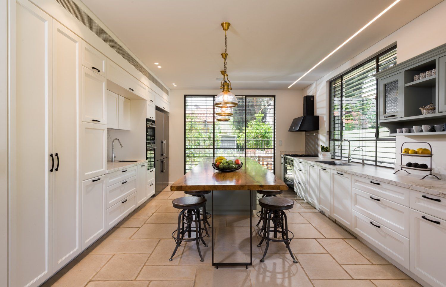 בית כפרי רחב ידיים בלב העיר המייצר חציצה וניתוק מהאורבניות בחוץ אל השקט והרוגע הפנימי. שימוש בחומרים טבעיים בכל עיצוב הבית, עץ, אבן, ברזל החוזרים במגוון וריאציות. נגרות עם פרטים של פיתוחים, אריחים מצוירים עם אופי ושימוש בטקסטיל רב.