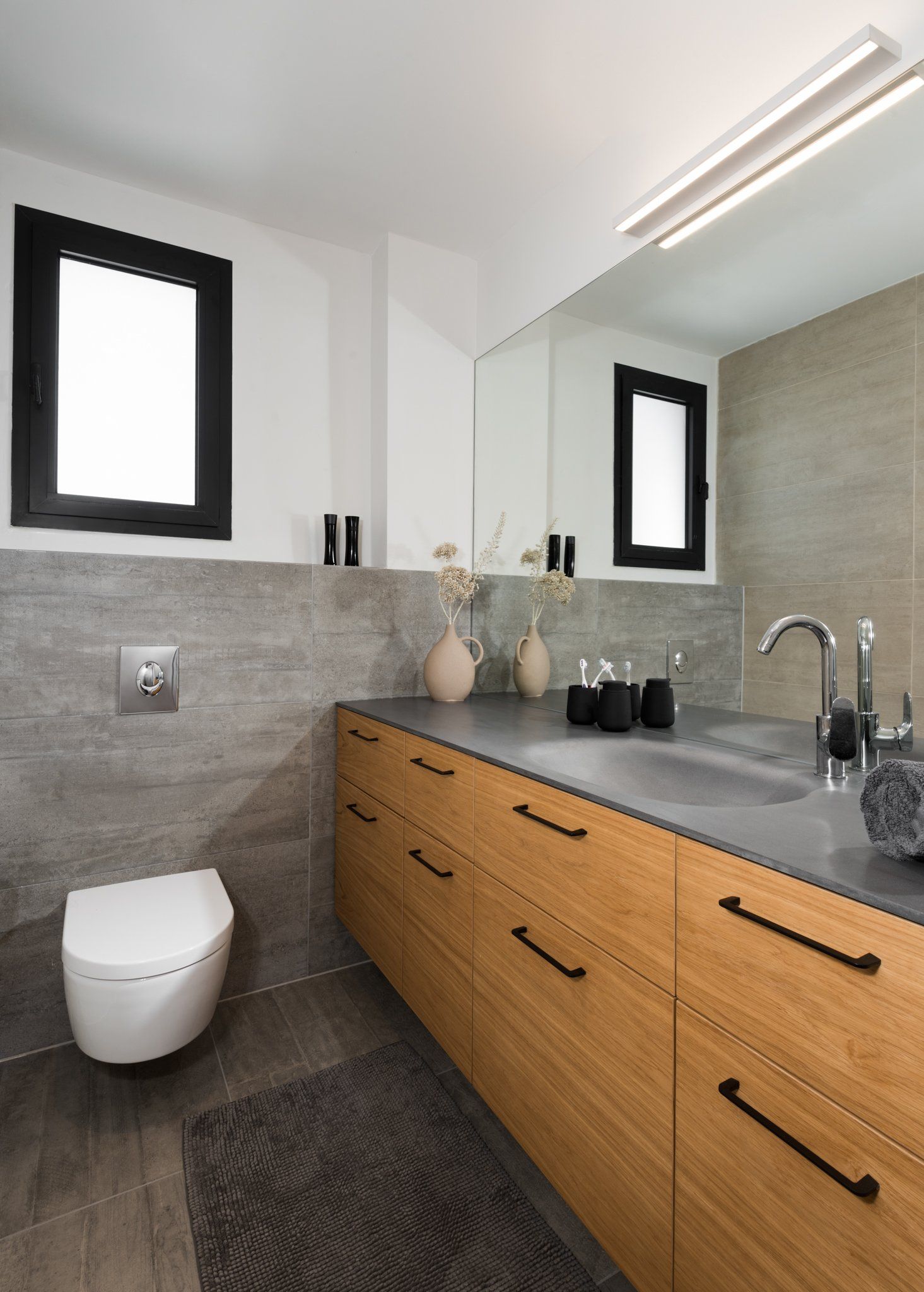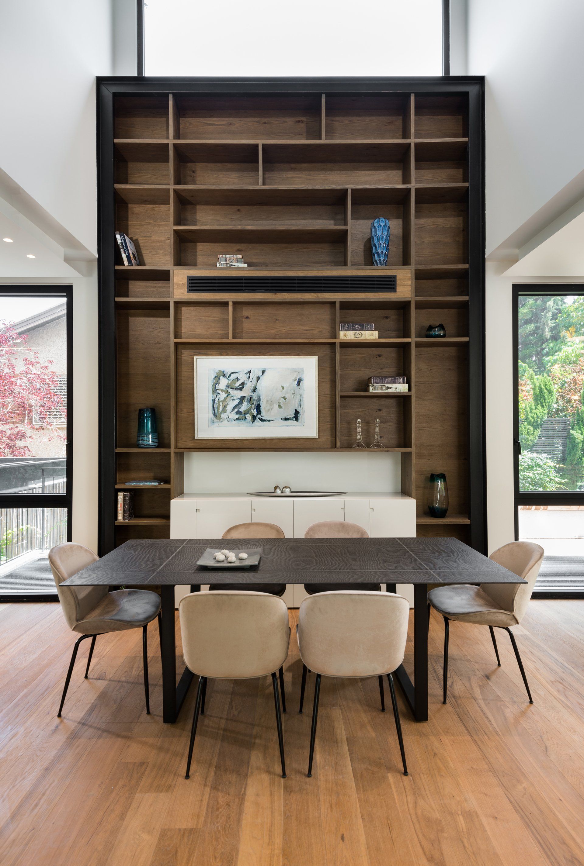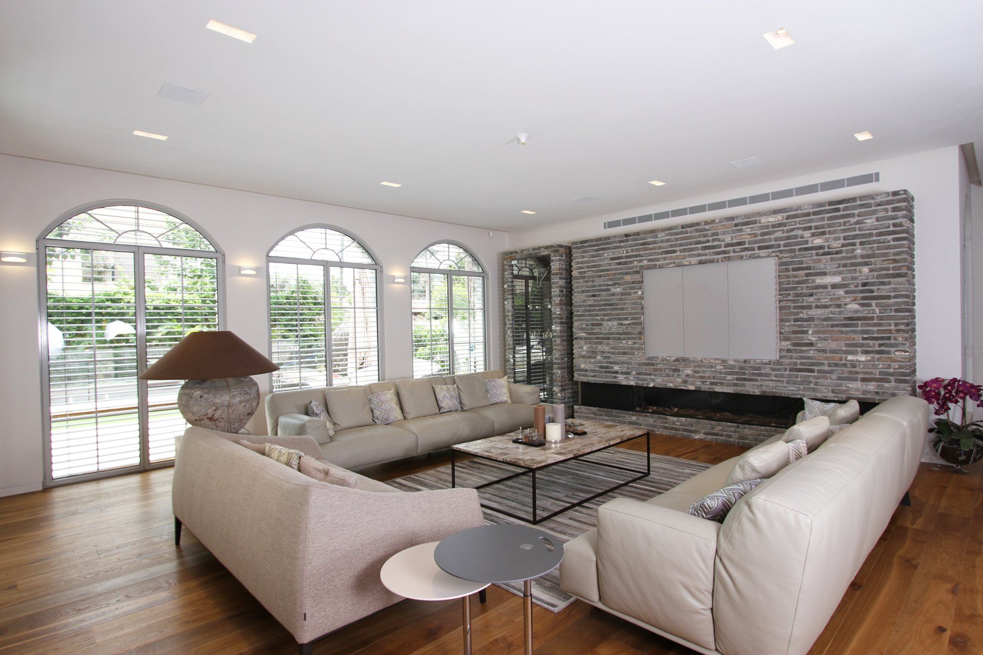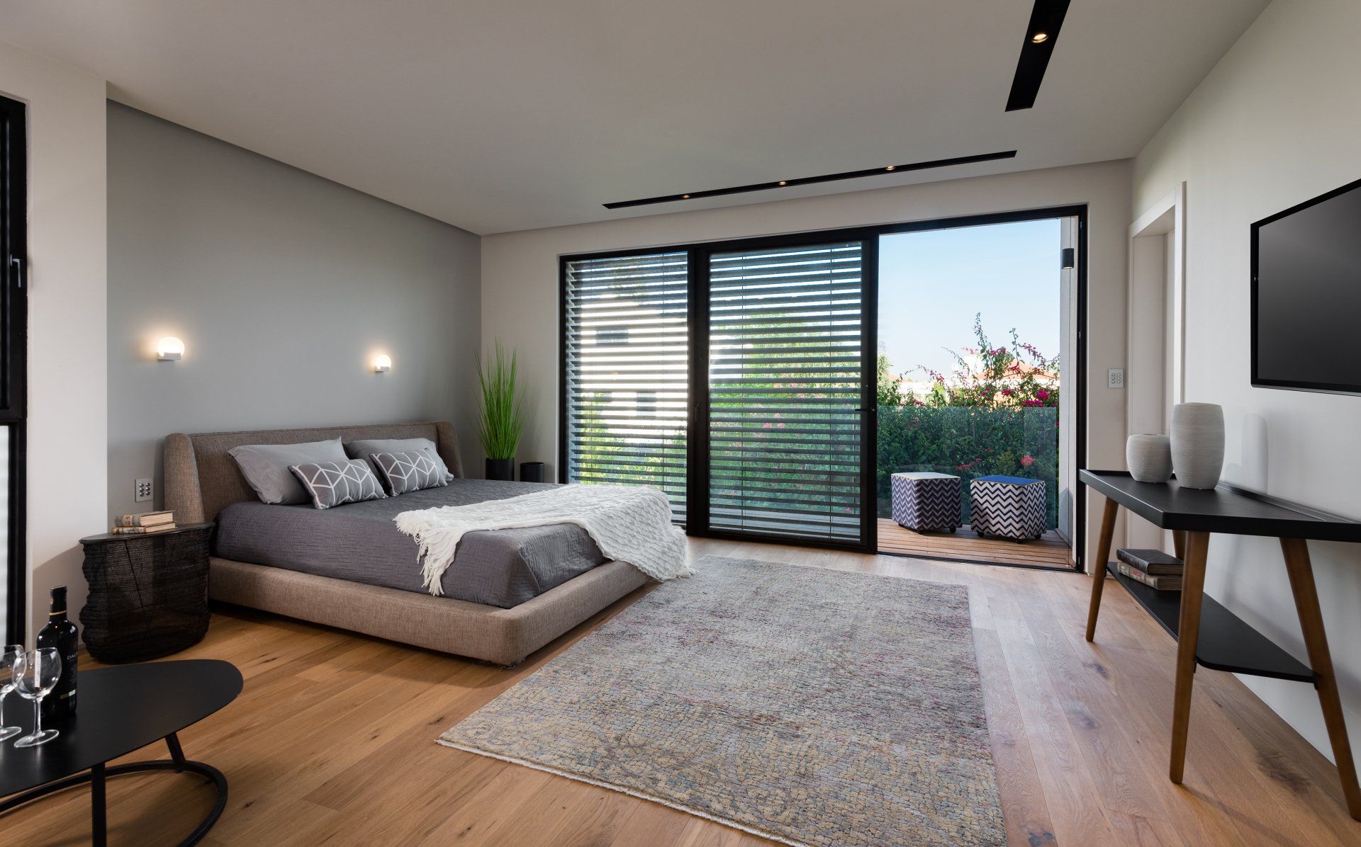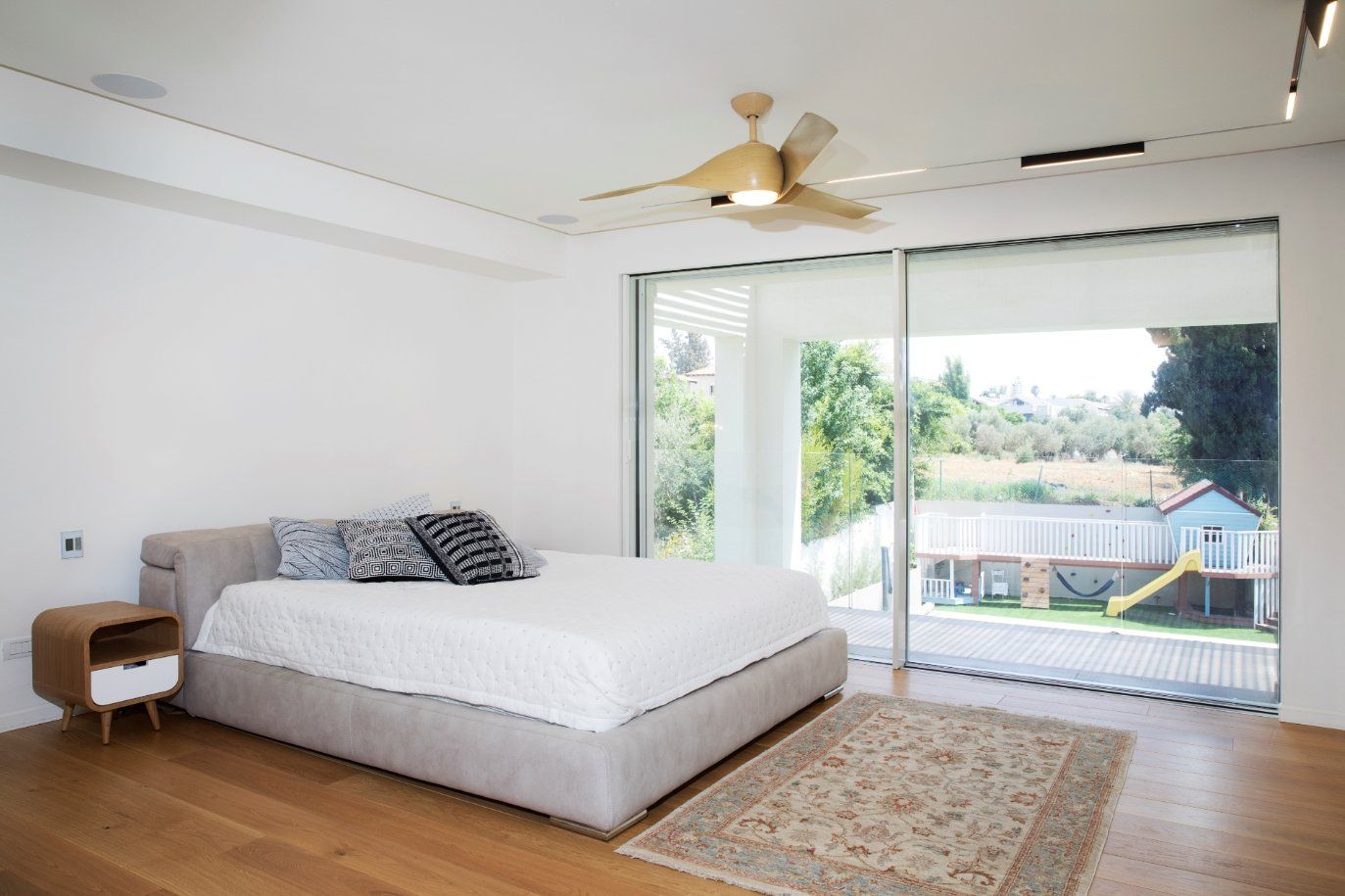 בית בסגנון מודרני חם. שימוש בבטון ואלומיניום שחור לצד חומריות של עץ הנוכחת בכל הבית. יצירת תחושת מרחב ע"י המשכיות רצפת הפרקט בפנים ברצפת דק חיצונית. במרכז הבית חלל כפול המלווה בספרייה גבוהה המייצרים תחושבת גובה. שימוש בחיפויים תלת מימדיים בחדרי הרחצה.