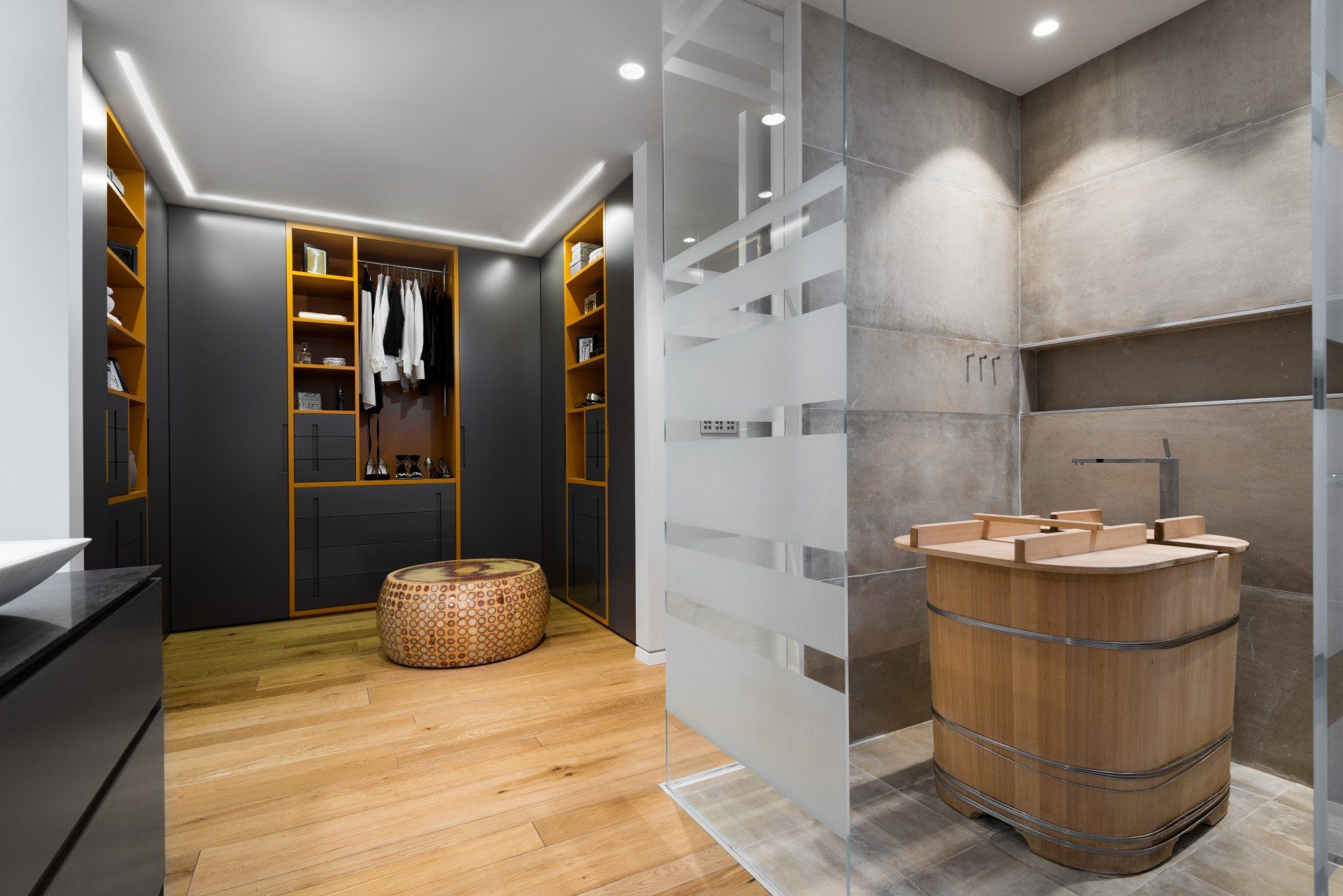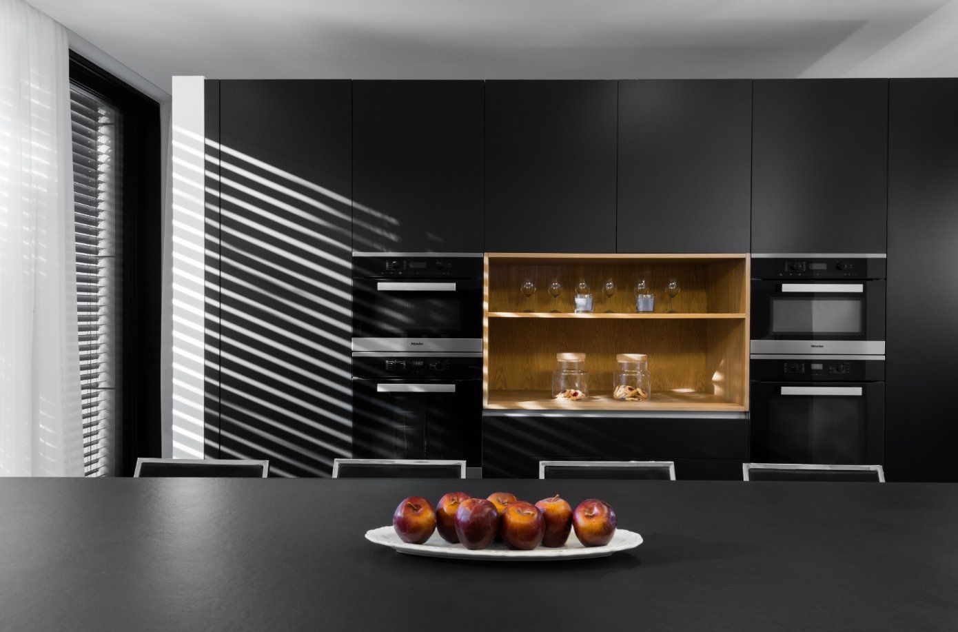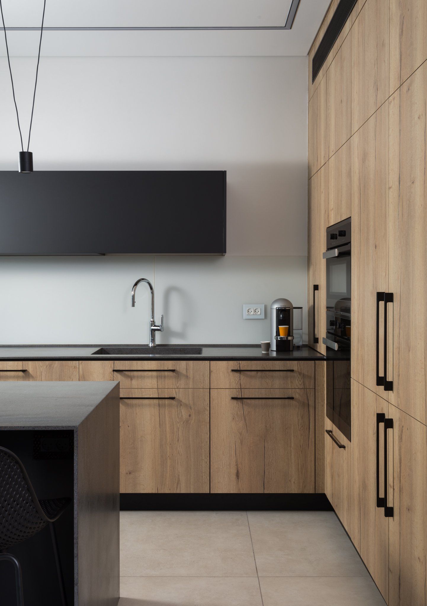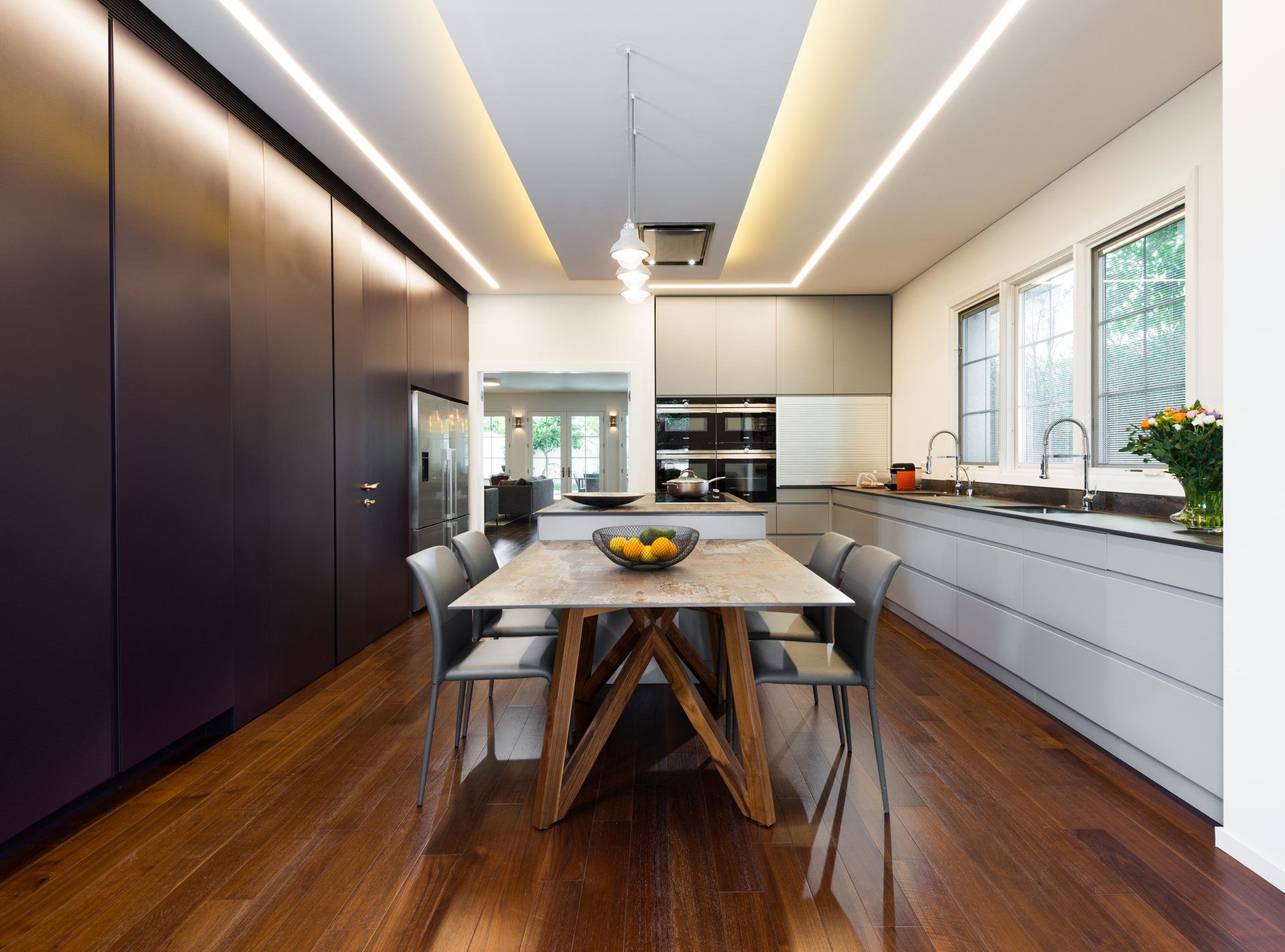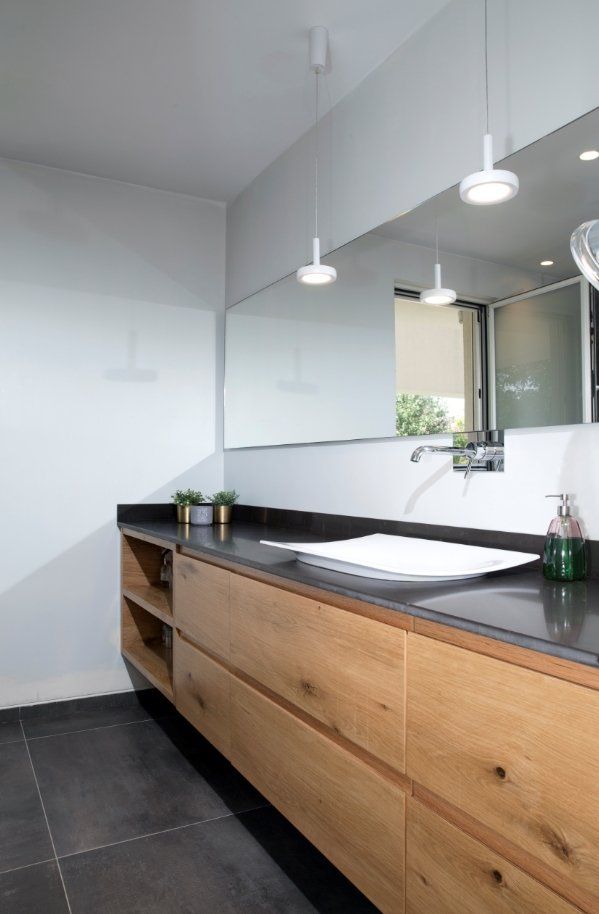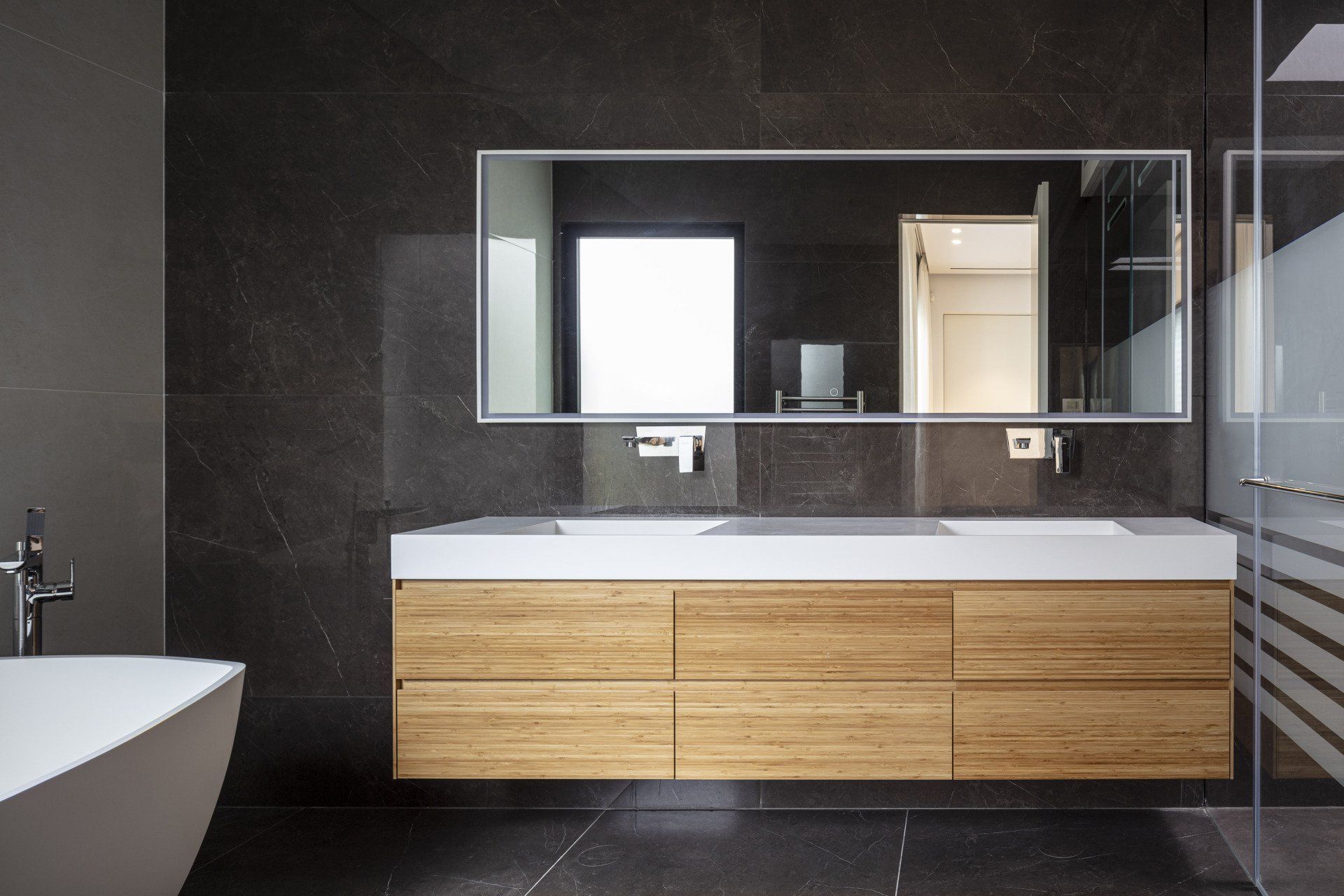 בית של קונטרסטים - מודרני בועט ומשלב בתוכו חומרים חמים טבעיים. שימוש בשחור לבן ועץ במנעד רחב של חומרים, גרניט, אבן, עור, עץ אלון ופרקט יחודי. החומריות של חומרי החוץ חודרת פנימה ויוצרת את העולם העיצובי הפנימי של הבית.
