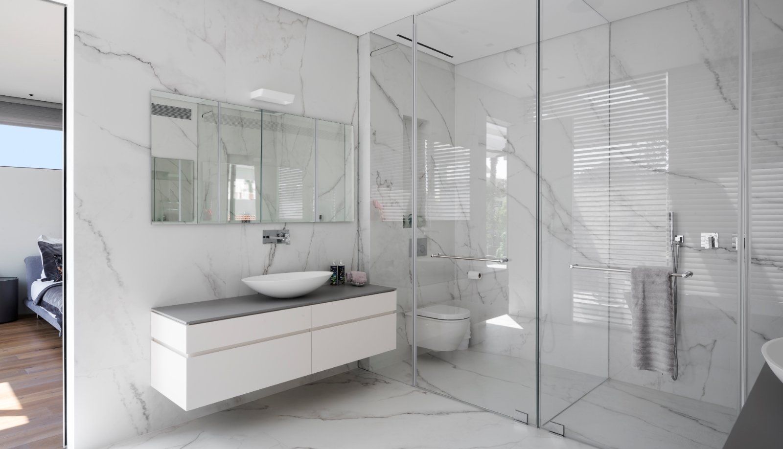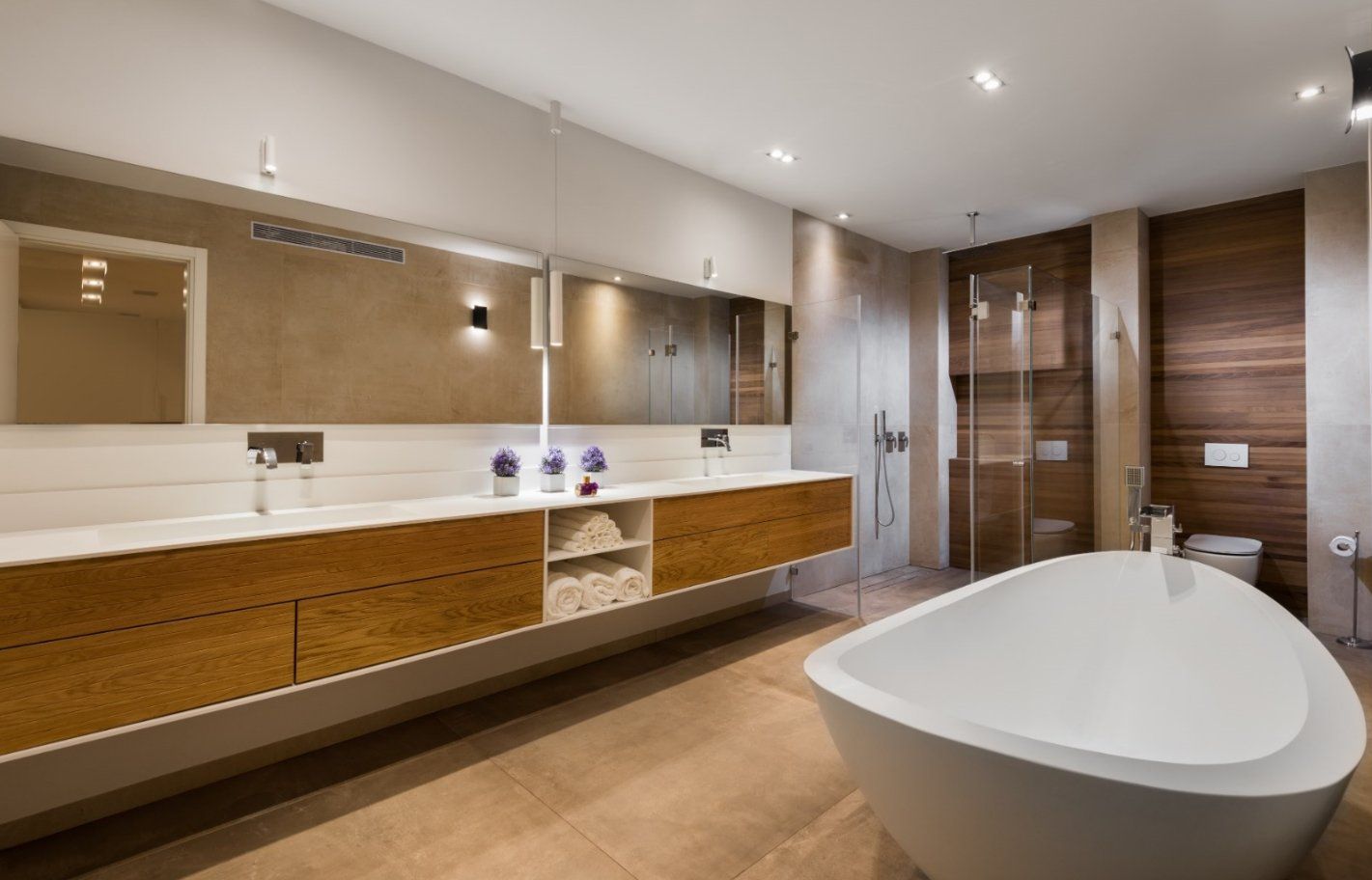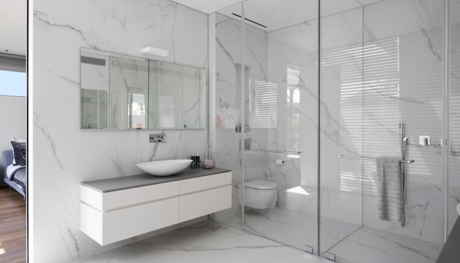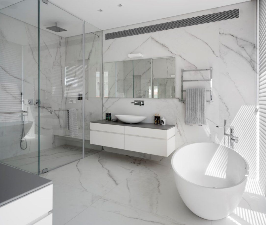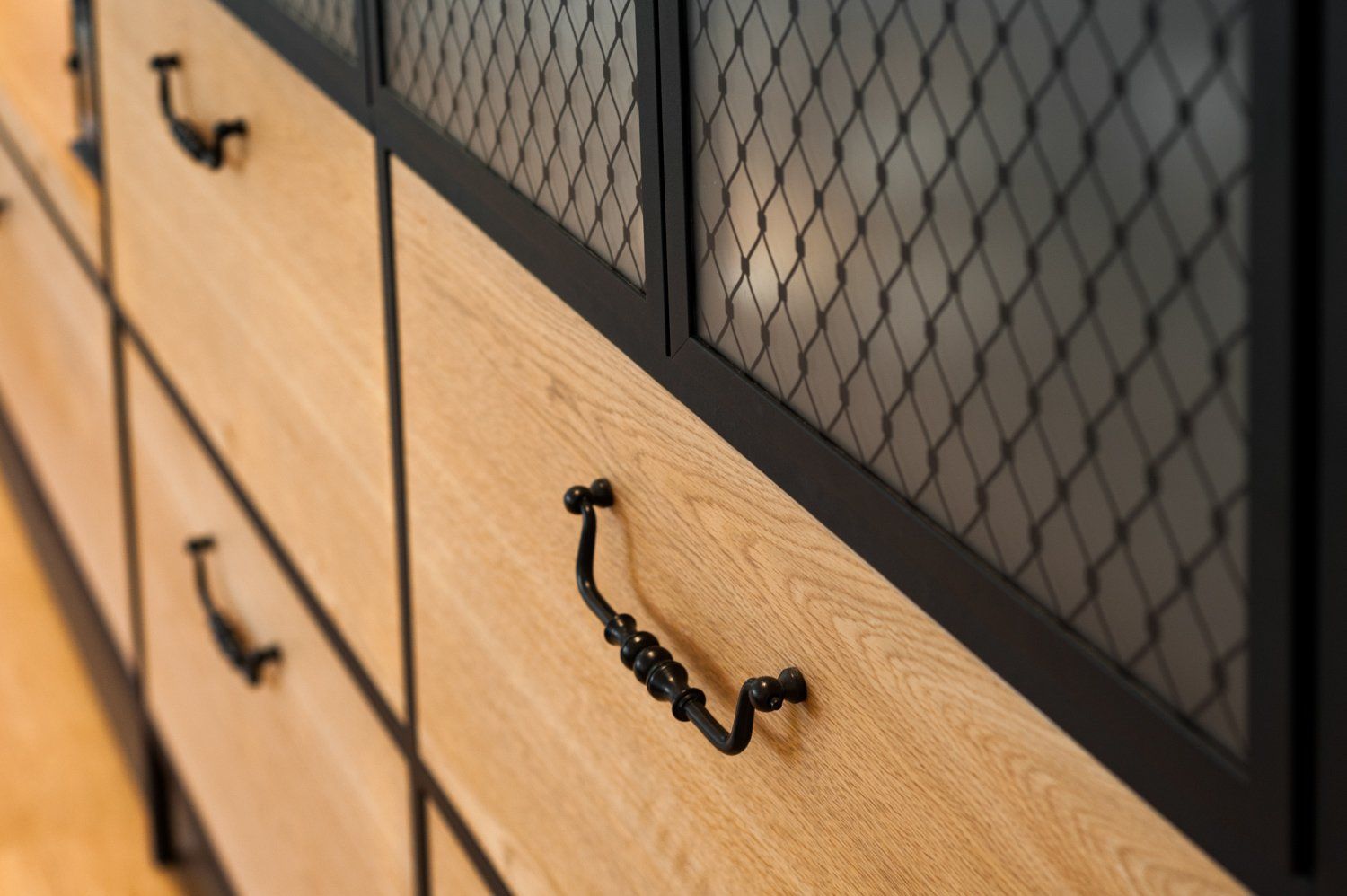 בית של קונטרסטים - מודרני בועט ומשלב בתוכו חומרים חמים טבעיים. שימוש בשחור לבן ועץ במנעד רחב של חומרים, גרניט, אבן, עור, עץ אלון ופרקט יחודי. החומריות של חומרי החוץ חודרת פנימה ויוצרת את העולם העיצובי הפנימי של הבית.