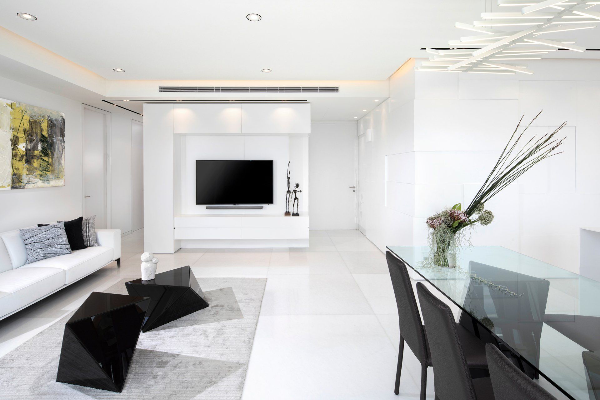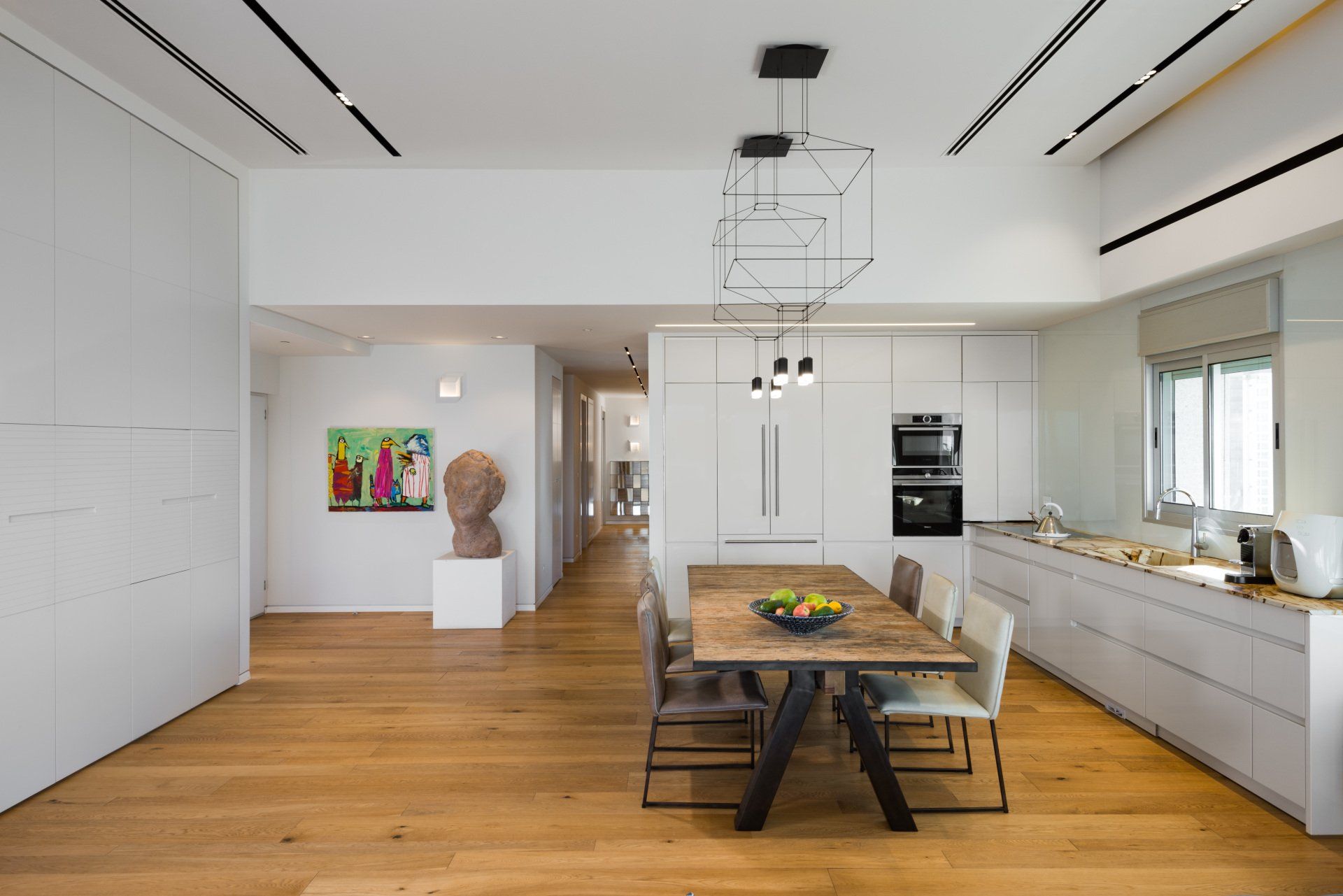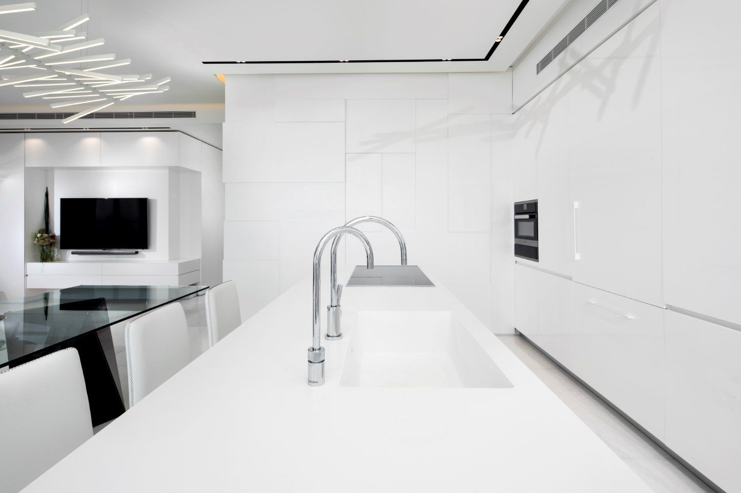 דירה לבנה בעיר הלבנה. הדירה תוכננה על טהרת הצבע הלבן כאשר החומרים הם ריצוף אבן לבן, משטחי עץ לבנים וקוריאן לבן. האלמנט העיקרי הוא חיפוי הממ"ד בנמצא בפנים הדירה ומחופה משטחי עץ לבנים הטכניקת תלת מימד המסתירים את מערכות וחלון הממ"ד. המטבח עצמו משתלב עם הקיר ומשטח האי גולד עד לרצפה