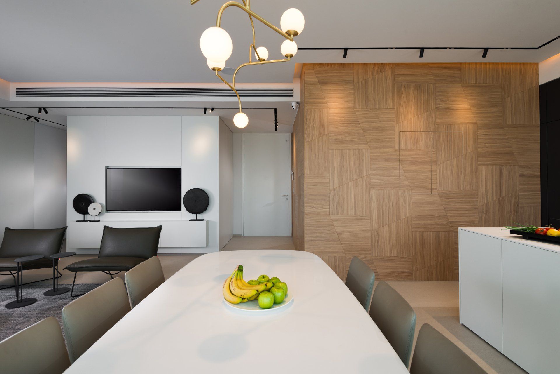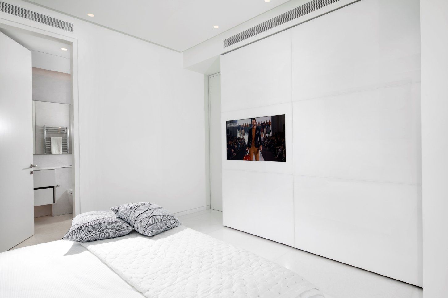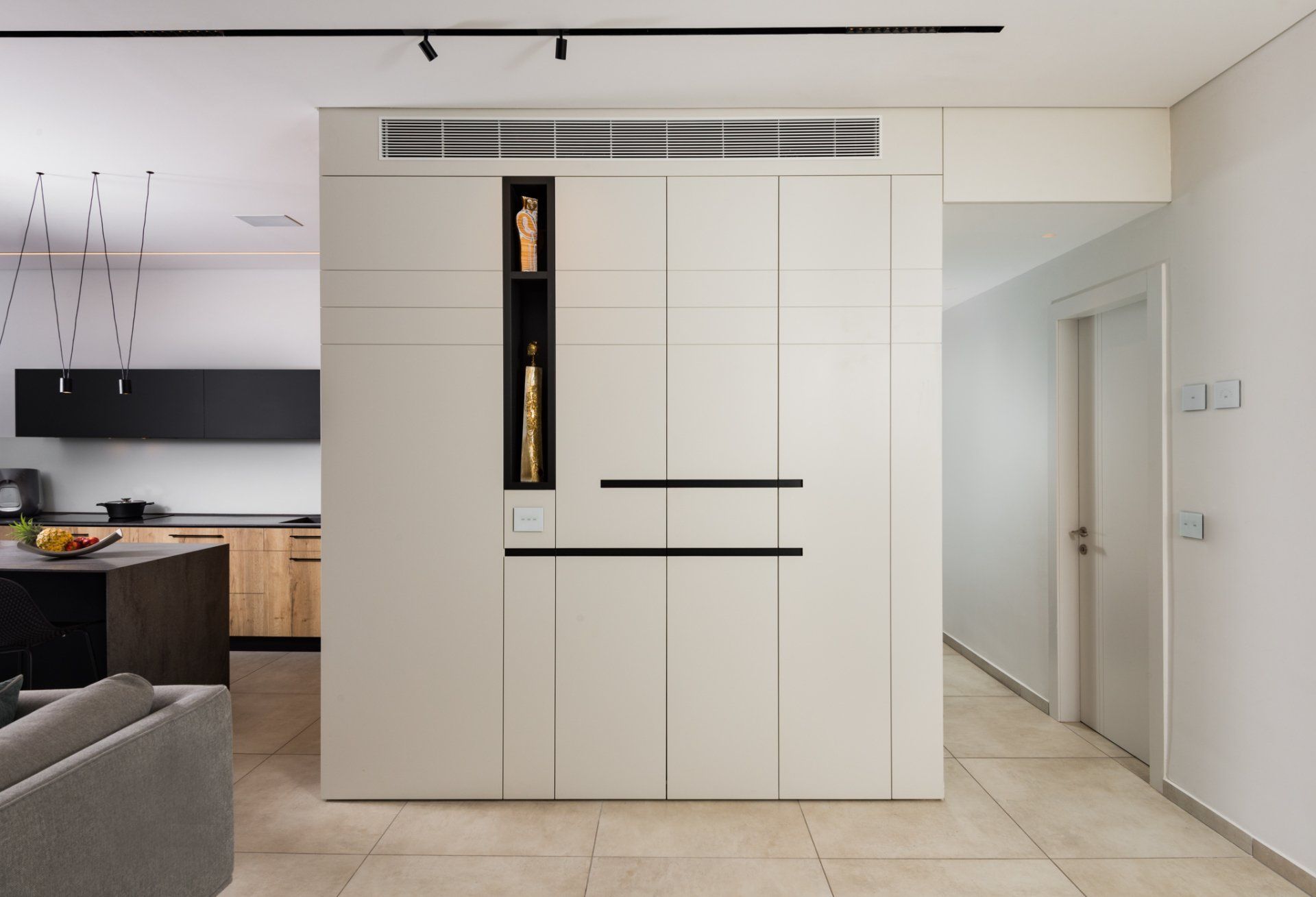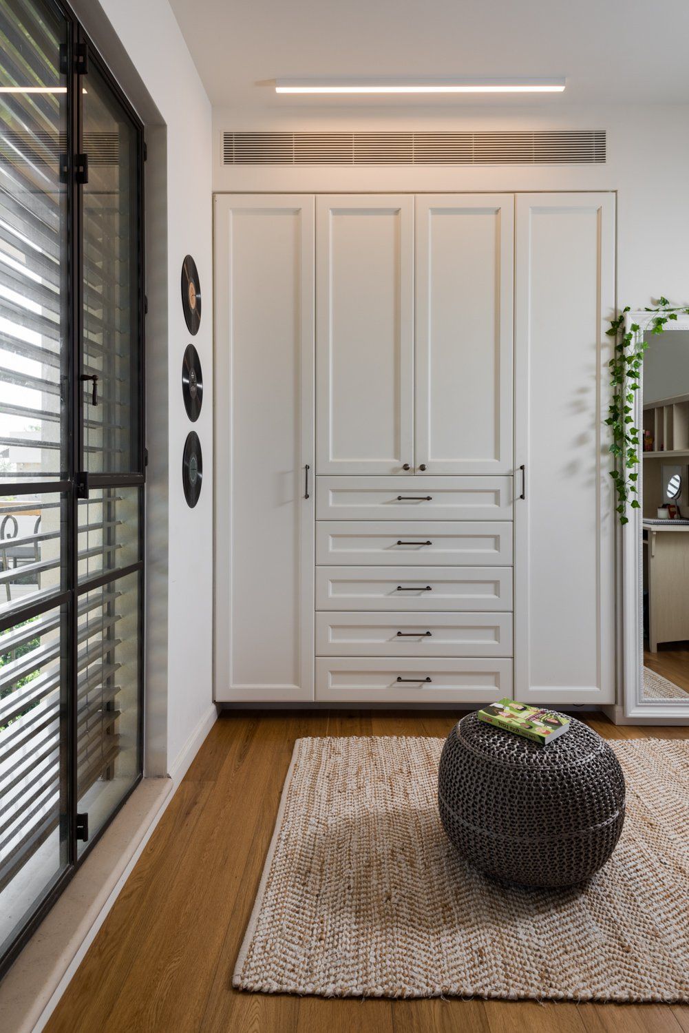 דירה לבנה בעיר הלבנה. הדירה תוכננה על טהרת הצבע הלבן כאשר החומרים הם ריצוף אבן לבן, משטחי עץ לבנים וקוריאן לבן. האלמנט העיקרי הוא חיפוי הממ"ד בנמצא בפנים הדירה ומחופה משטחי עץ לבנים הטכניקת תלת מימד המסתירים את מערכות וחלון הממ"ד. המטבח עצמו משתלב עם הקיר ומשטח האי גולד עד לרצפה