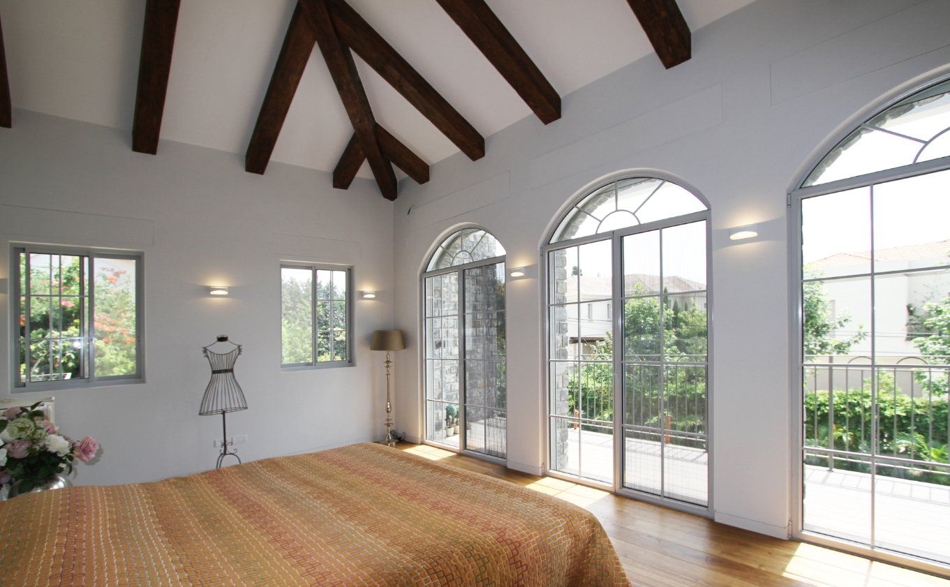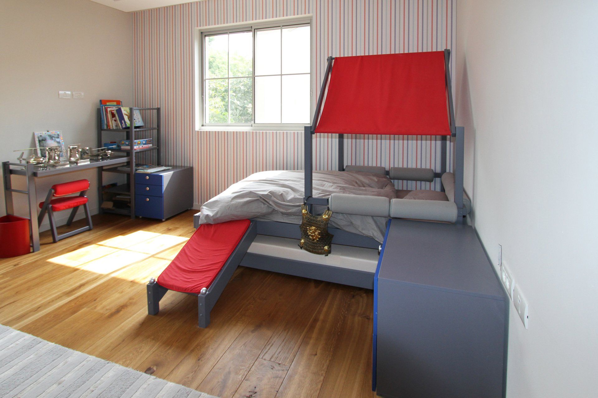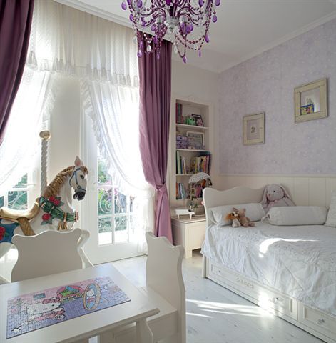 חדרי הבנות סגולים ומשלבים בובות עתיקות, סוס נדנדה ושנדלירים רומנטיים. חדר הורים במראה קלאסי בשילוב גווני זהב וקרם.