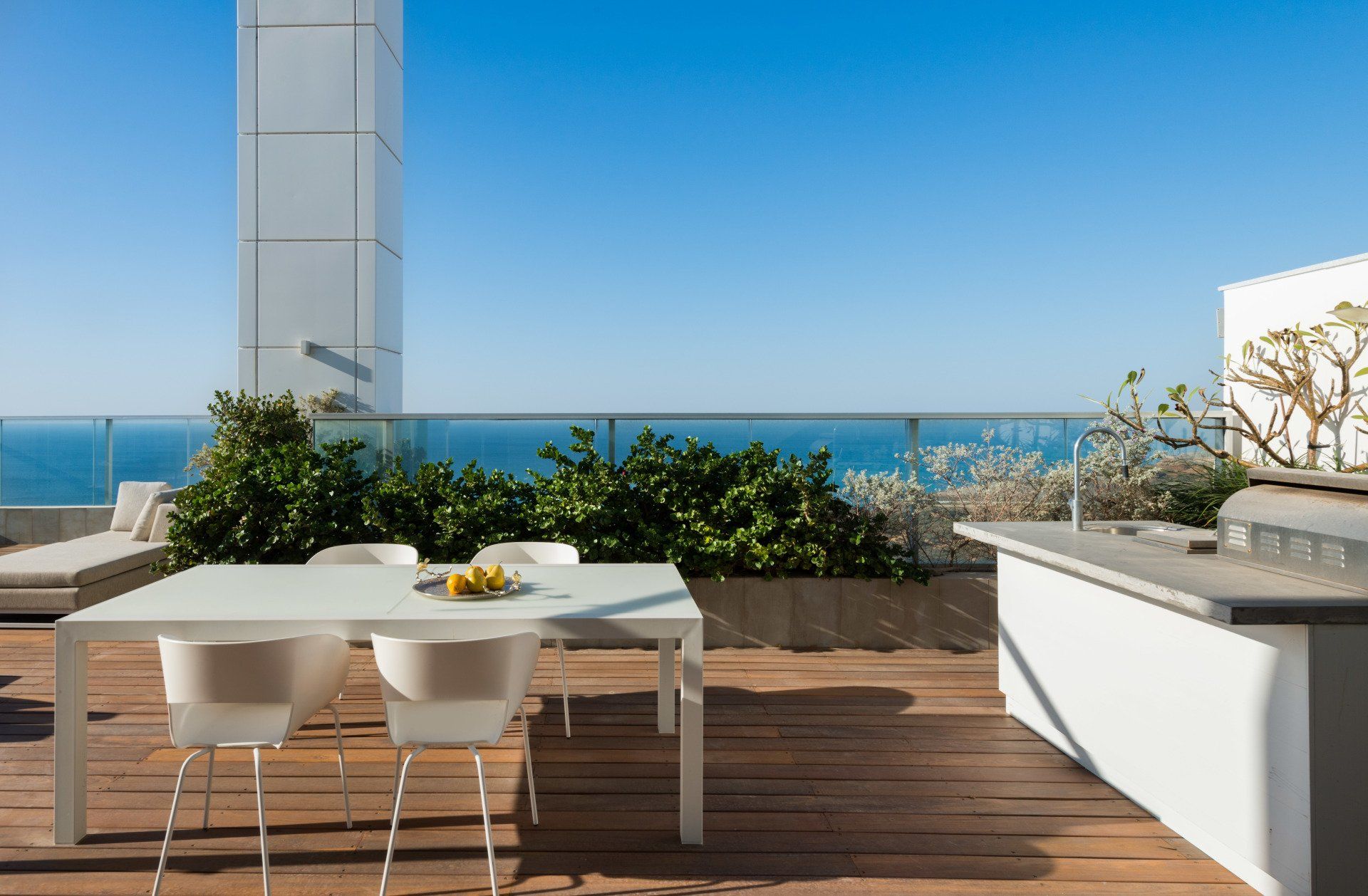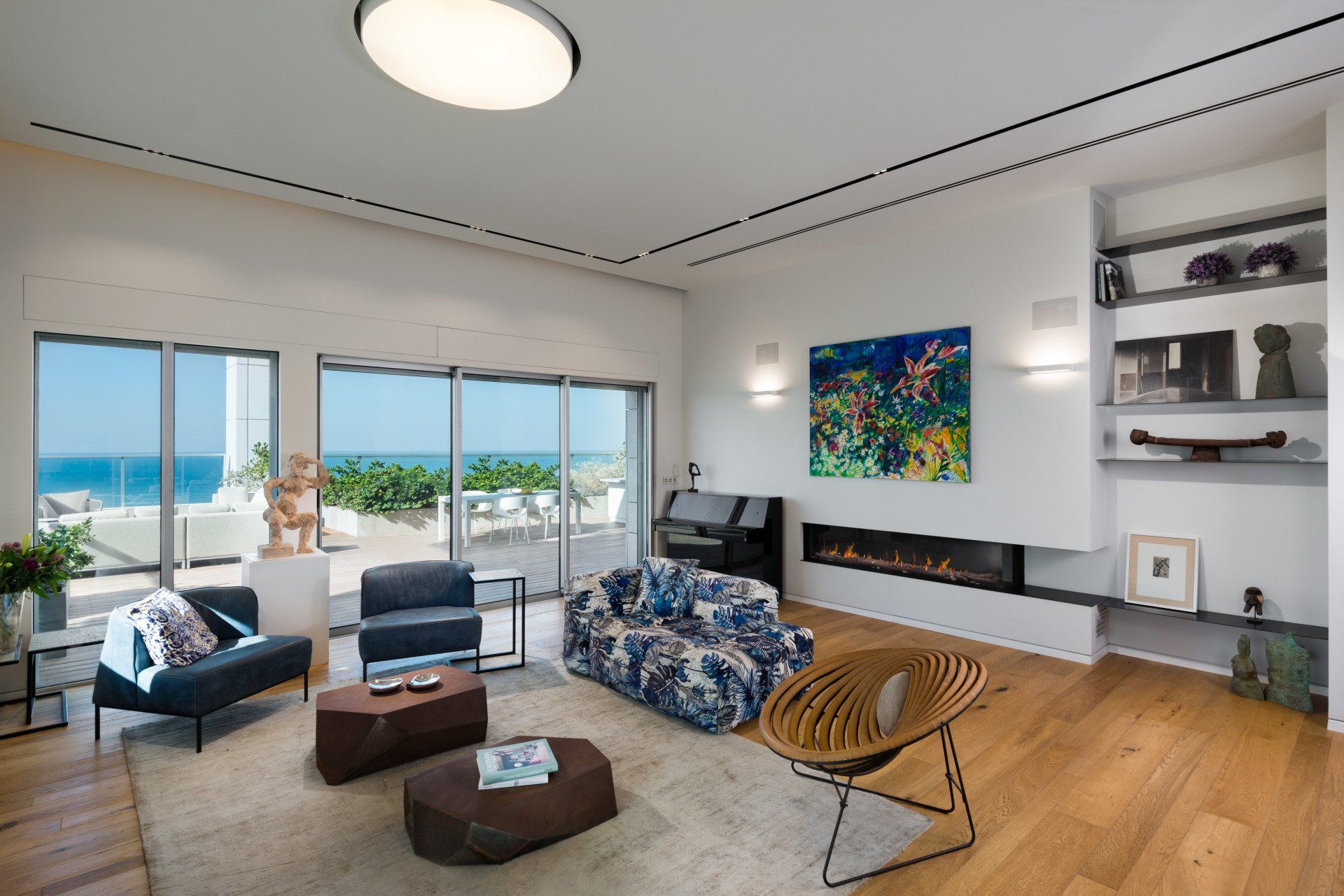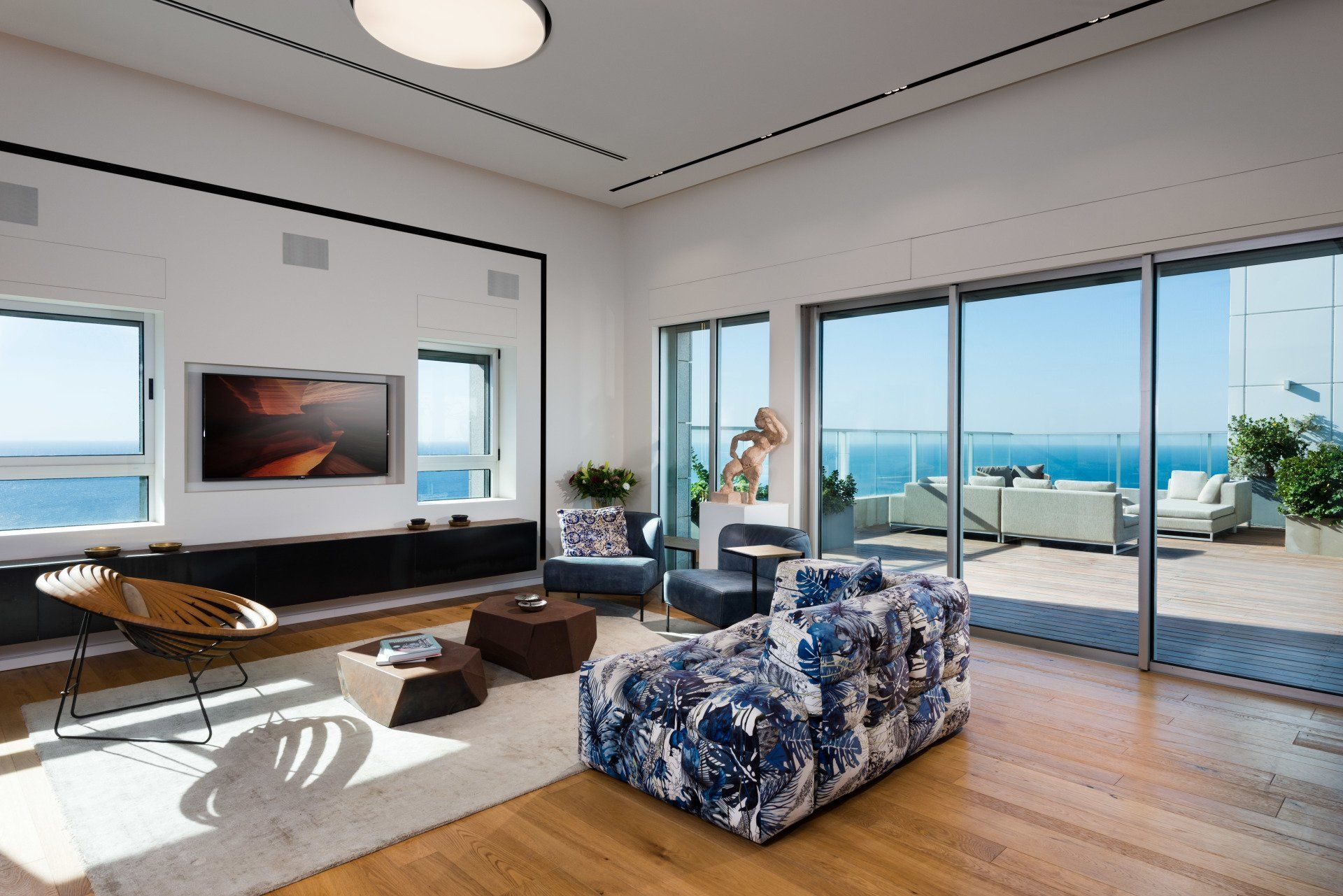 פנטהאוז היושב על הים ובו בחירות העיצוב נגזרו מהקרבה לים והשפעתו. שימוש בפריטי ריהוט מברזל המקבלים קורוזיה עם הזמן ושילובם עם צבע כחול עץ טבעי מייצרים המשך טבעי לסביבה החיצונית. בגג שולבה בריכת אינפיניטי בה קו המים מתלכד עם השמיים