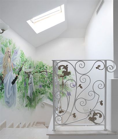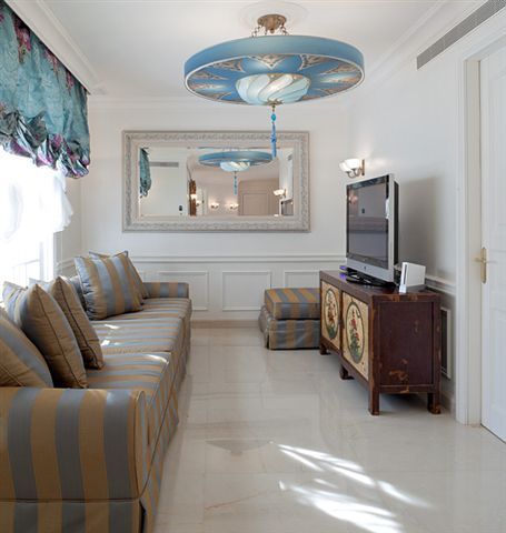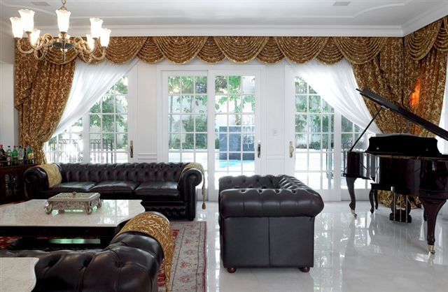 עיצוב פנים קלאסי כבד ושימוש בוילונות כפולים מבד משי. שימוש מסיבי בקרניזים בתקרות ובקירות כדי למסגר חלונות, דלתות ותאורה. בחדרי הילדים העיצוב נבחר כמוטיב מאגדה. חדר הבנים עם מוטיבים של מלחים כולל הגה אונייה אמיתי שנקנה באחד מהשווקים בחו"ל, שילוב גלגלי הצלה על הקיר והדפסי סירות על הוילונות.